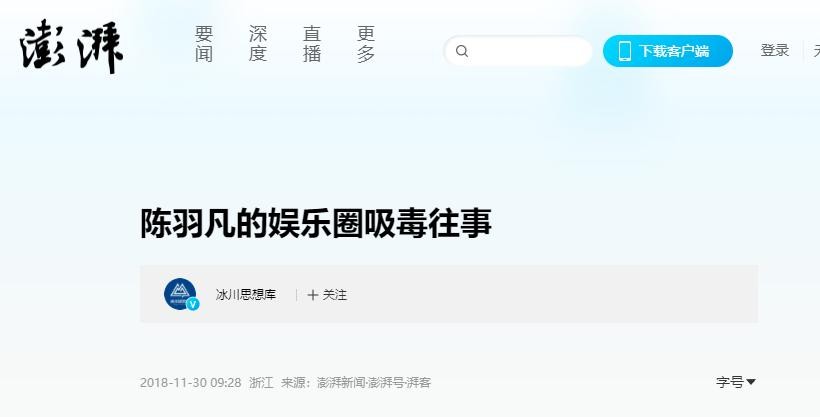 澎湃新闻-2018年11月30日-《陈羽凡的娱乐圈吸毒往事》
