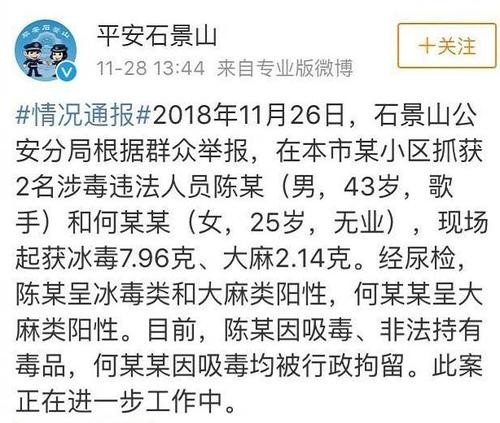 2018年,陈羽凡的吸毒事件曝光后,他彻底失去了公众的信任,演艺生涯也随之结束,曾经红极一时的羽泉组合,也因为他的错误而解散。