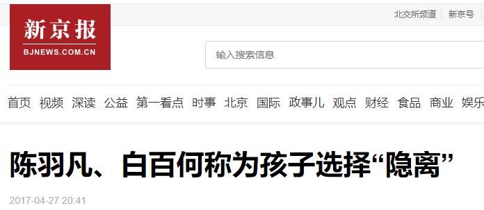 新京报-2017年-4月27日-《陈羽凡、白百何称为孩子选择“隐离”》