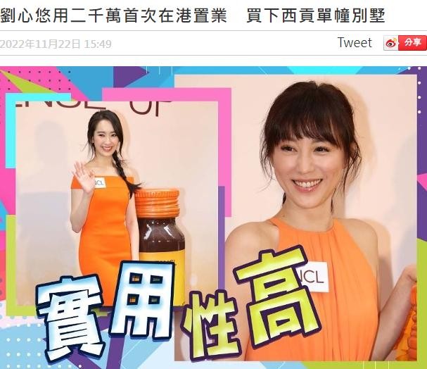刘心悠对感情生活一直低调,去年曾承认在香港购房,以个人名义斥资2250万港币购入西贡一栋200平米的村屋,透露已经卖掉了国外物业,套现后一次性买下这套房子。