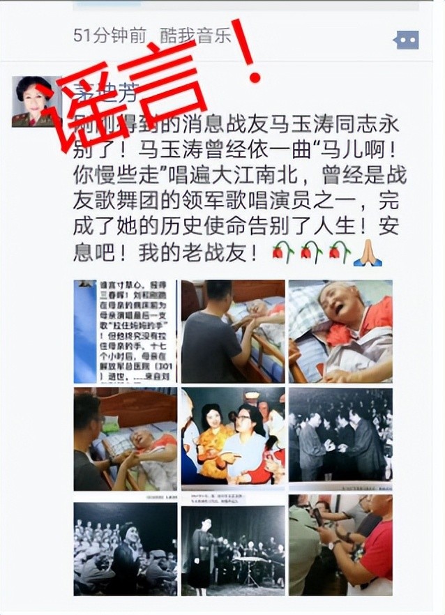2017年,部分网友发布了一条动态称“著名歌唱家马玉涛去世”。