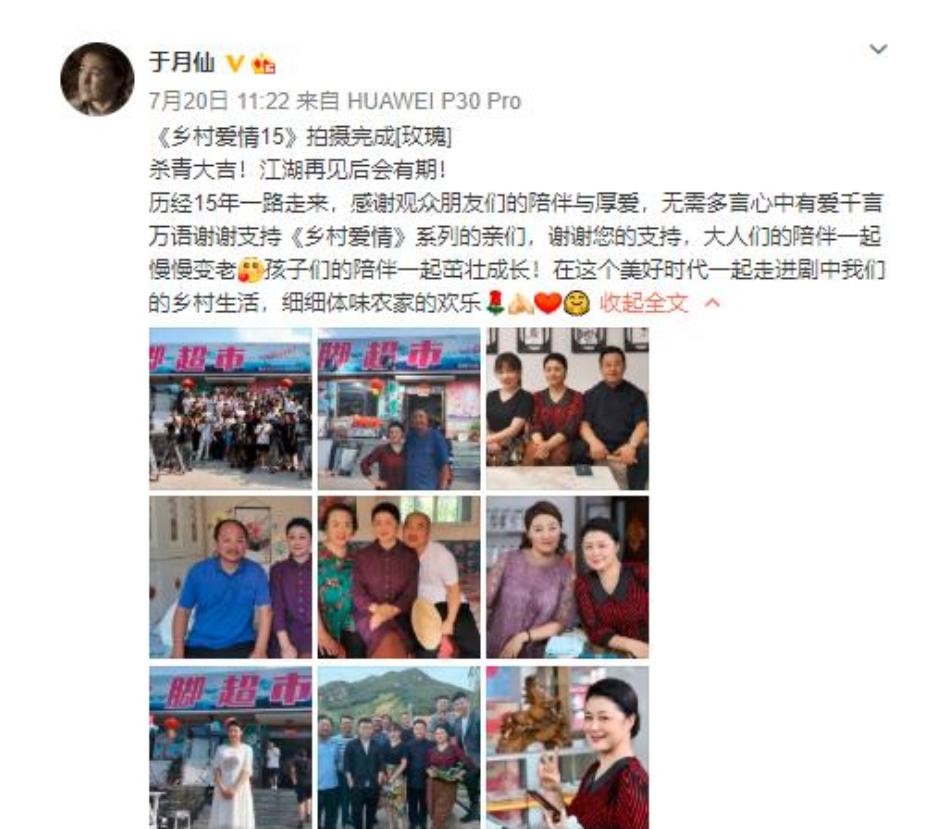 前段时间《乡村爱情》15刚刚杀青,于月仙还在微博做宣传,没想到才几天的时间,就这样走了。