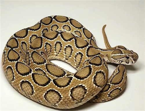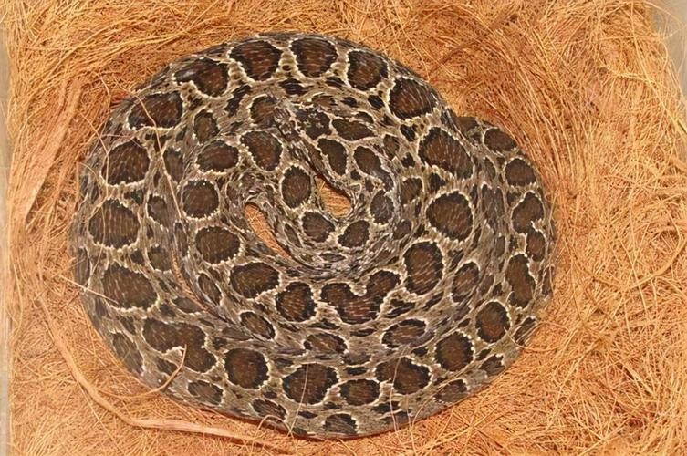 若你碰到一条,体型粗长,浅色的表面浮现着各种棕色的圆形对称斑点,其中又以身体最中间的一排圆形斑点最大的毒蛇,这家伙叫做圆斑蝰。
