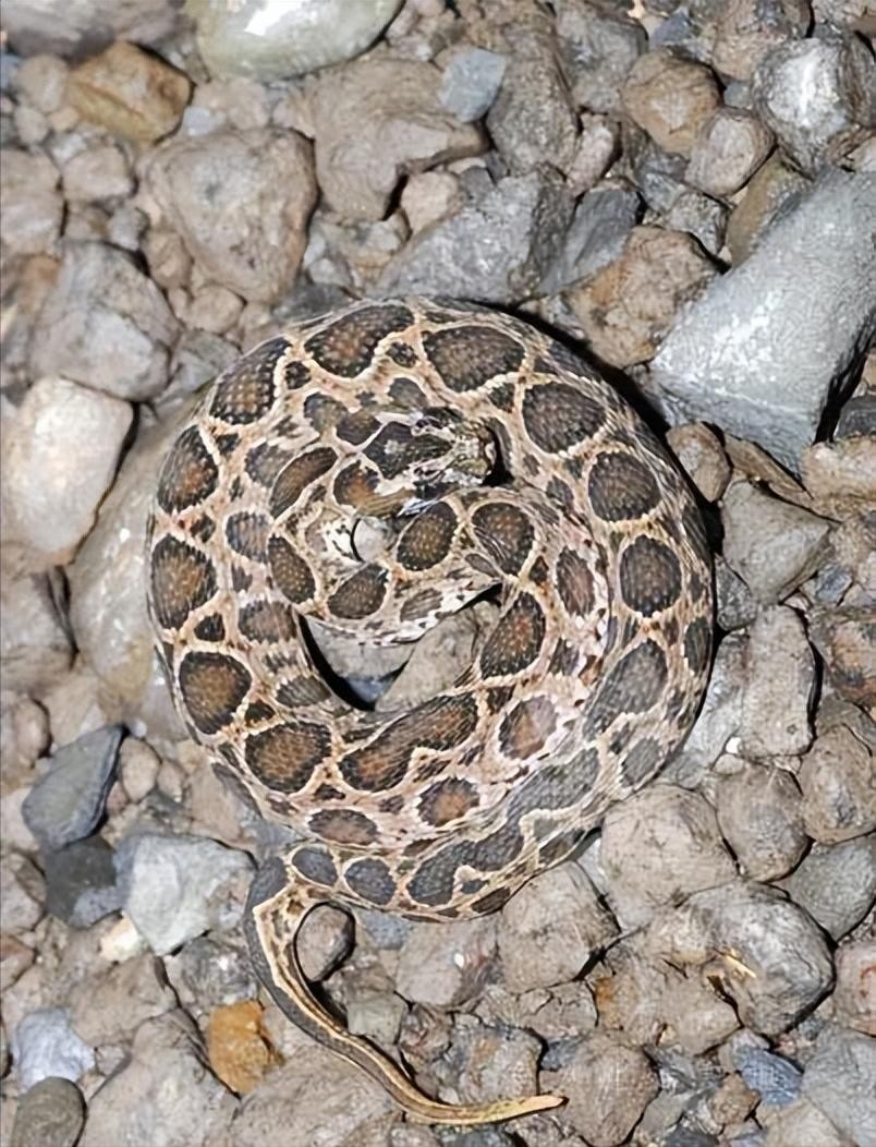 中国毒蛇有很多种,其中蝰蛇科的数量最多,我们常见的蝰蛇科毒蛇有尖吻蝮、短尾蝮、原矛头蝮,黑眉蝮、极北蝰等,而圆斑蝰也是蝰蛇科的一员猛将。