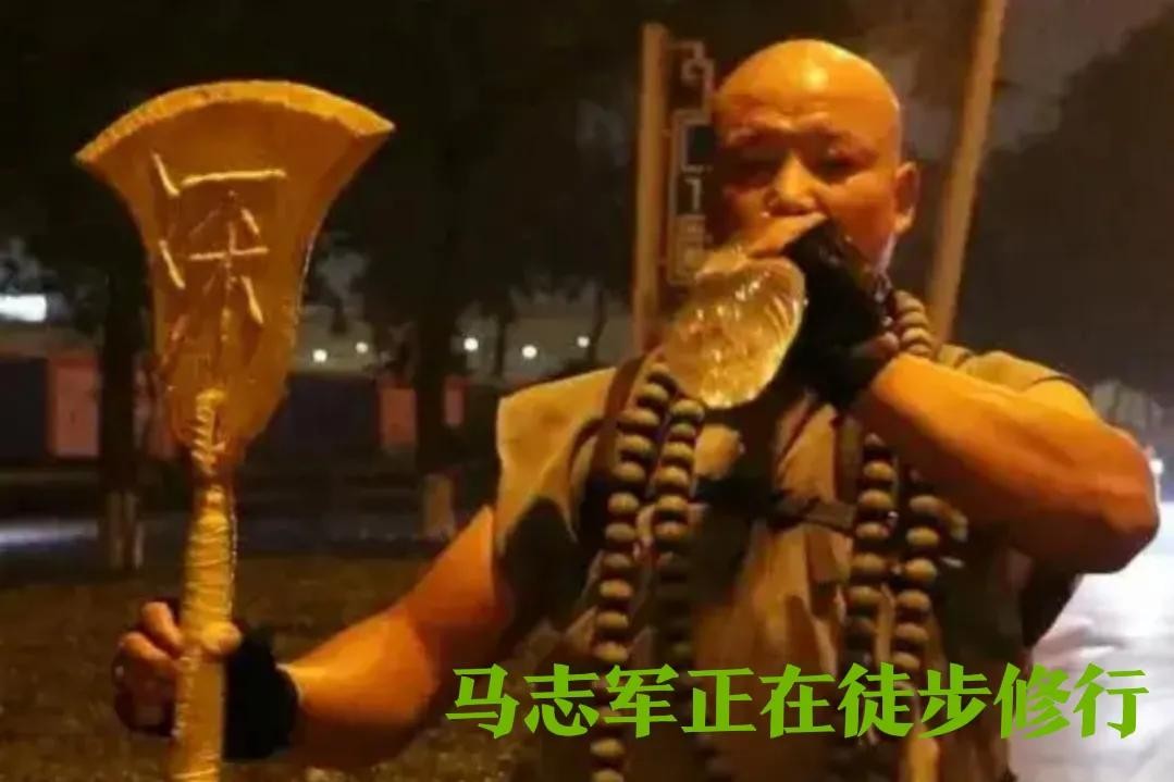 小伙子名叫马志军,今年37岁,来自河北省唐山市,目前在太原铁路枢纽西南环盾工程部当一名安保。他每天白天上班,晚上就拿起62斤月牙铲,背着哑铃徒步10公里来修行。