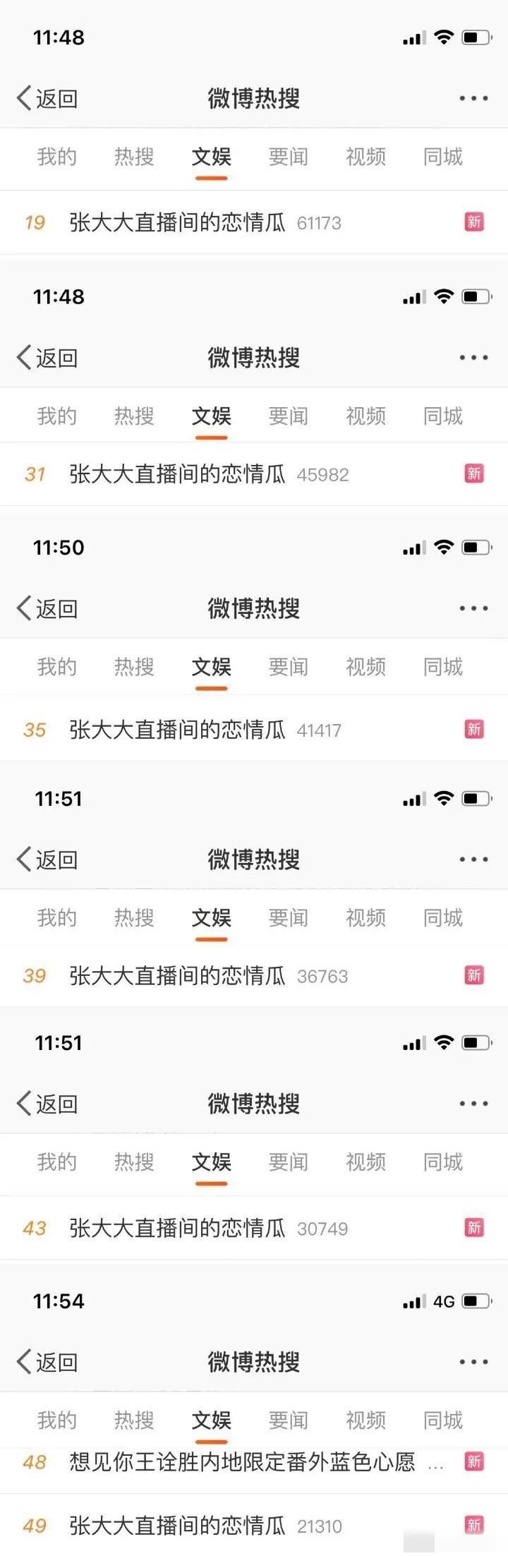 事情曝出后,张大大直播间曝出恋情瓜直冲热搜榜第二,但是10分钟后突然下了热搜,跑到了第39.可见这位男爱豆应该是真的红,而且身后有个大公司。不然不会撤热搜这么快,速度简直堪比火箭。