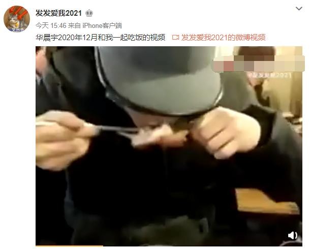 第四条视频,她表示是华晨宇跟自己一起吃饭时拍下的,但看不清楚正脸。
