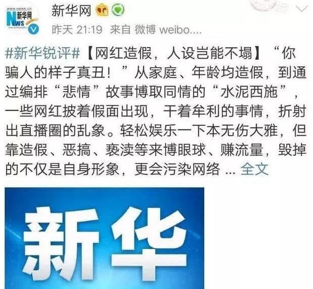 不管水泥妹还是水泥姐,粉丝本来是对她们同情,觉得她们充满了正能量,在这个物欲横流的时代,与其他网红不同,结果利用网友的同情心,各种套路网友,也难怪被主流媒体点名批评:“你骗人的样子真丑!”。
