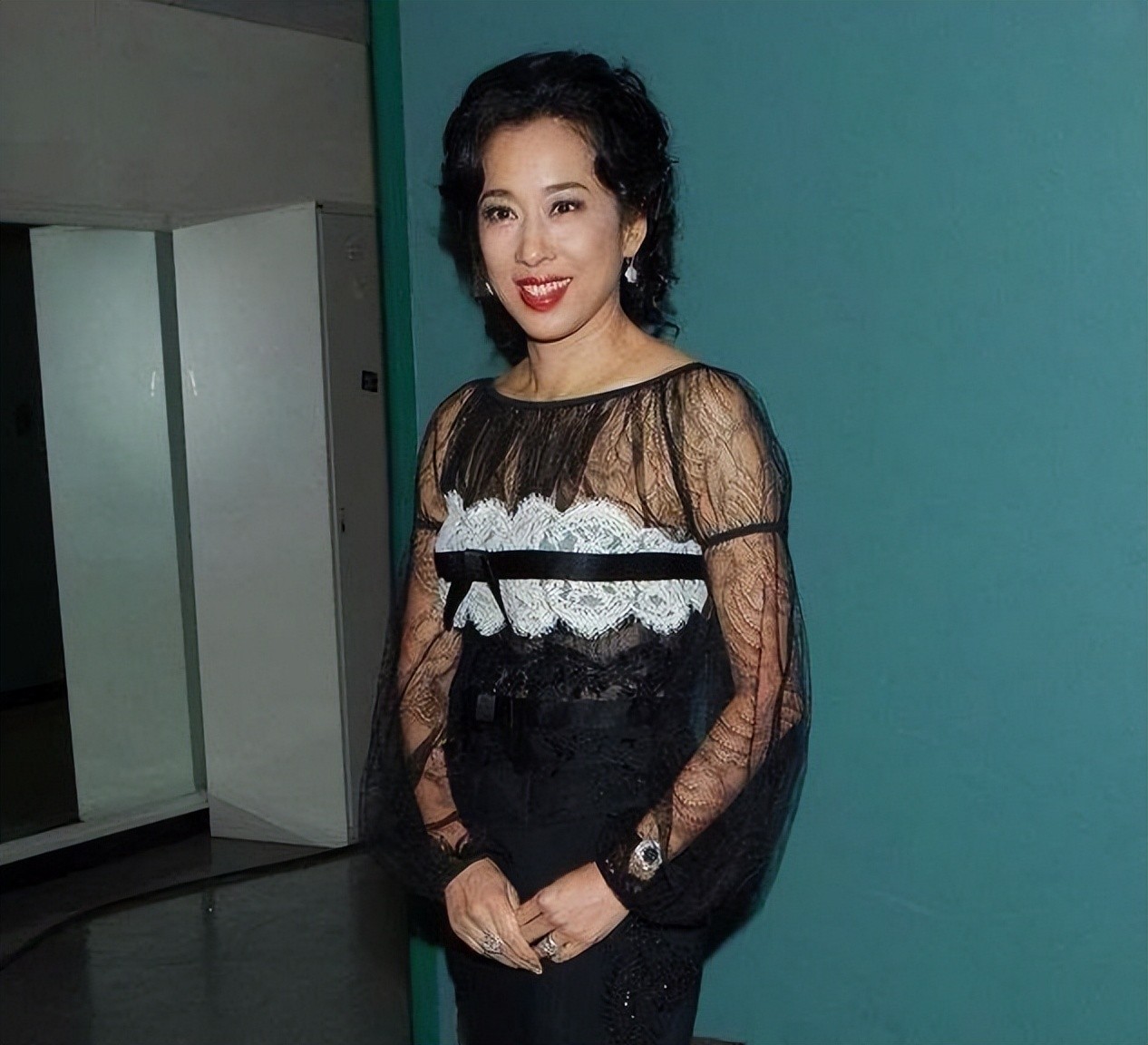 郭晶晶婆婆与二婚老公合影,富态身材穿薄纱裙,65岁美出新高度