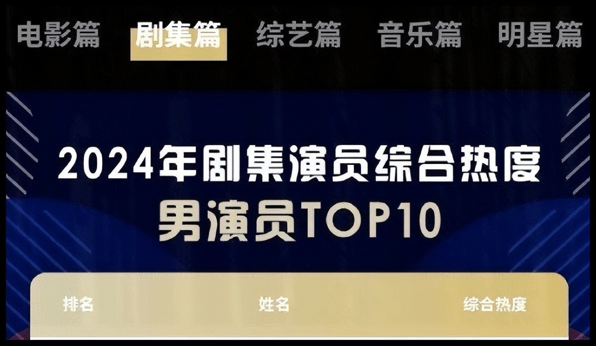 先说点让人惊讶的——“2024年剧集演员综合热度”榜单上,前十名的男演员,每一个都可以用“现象级”来形容。