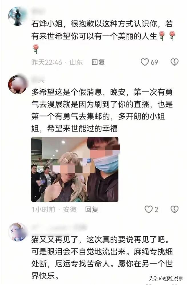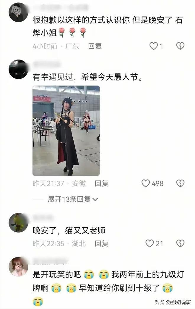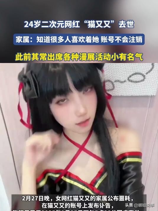 在她社交账号的评论区,全是粉丝们深情的留言:“猫又又,你是我二次元世界里的光,怎么突然就走了”
