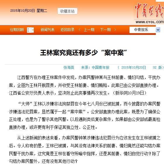 中国青年报2015年10月20日,王林案究竟还有多少“案中案”