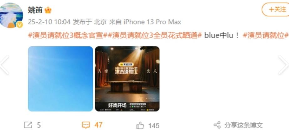 近日,42岁的姚笛因在综艺节目《演员请就位3》中的镜头被全部删除而引发热议。这是她在节目播出后首次公开发声,她在社交平台上简短写道:“生活还得继续。”