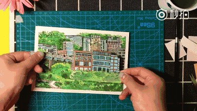 美学设计博主@CallMe任姐发现每天都有很多人来看列车穿楼的景象,便突发奇想,手绘出一个微缩版的李子坝站。
