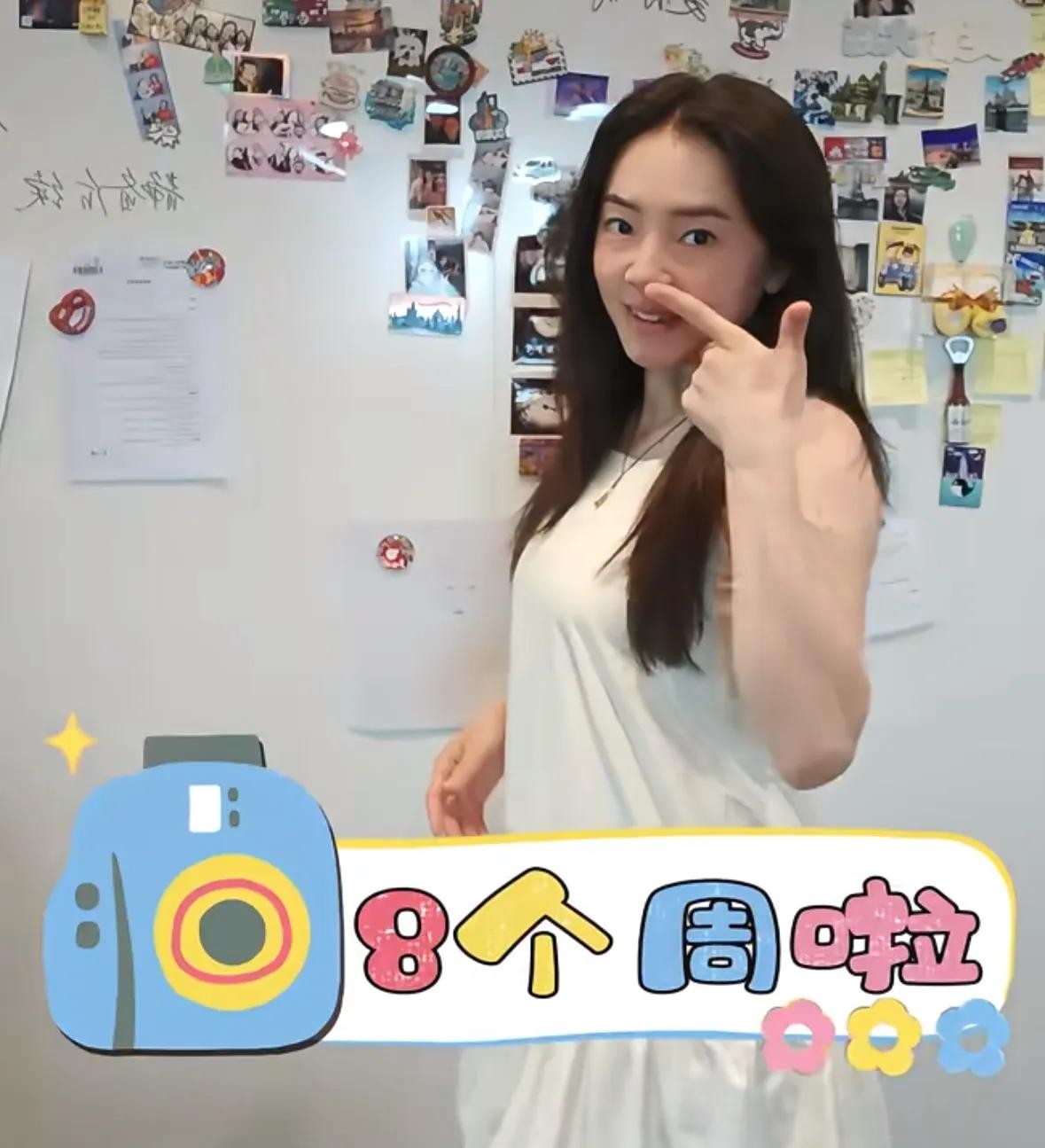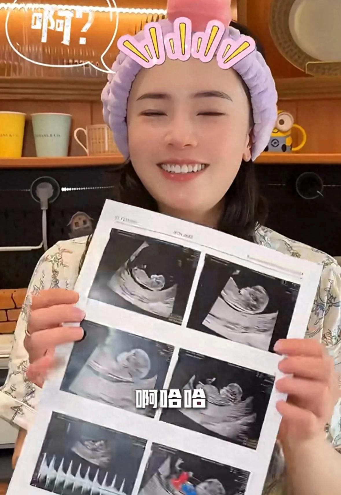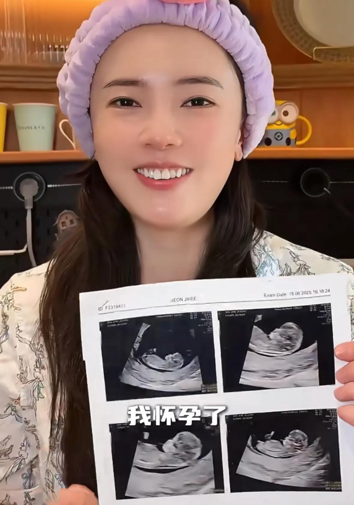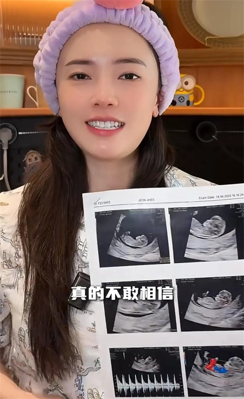 她面色红润,看起来胖了不少,她晒出了自己做的b超照,表示自己都不敢相信,自己的肚子里竟然有一个人。