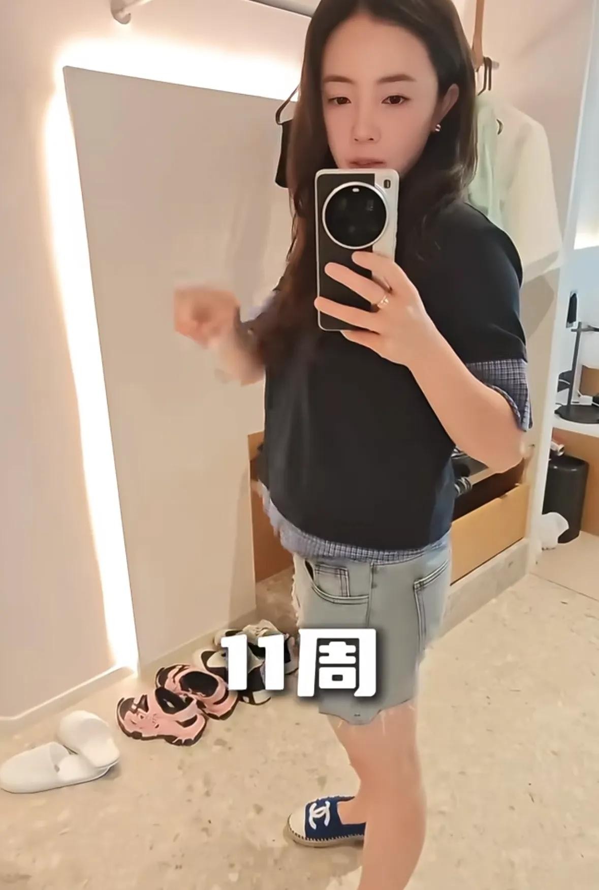 8周的时候还看不出来,只不过田志希看着憔悴了很多,到了11周,就开始有了小肚子。