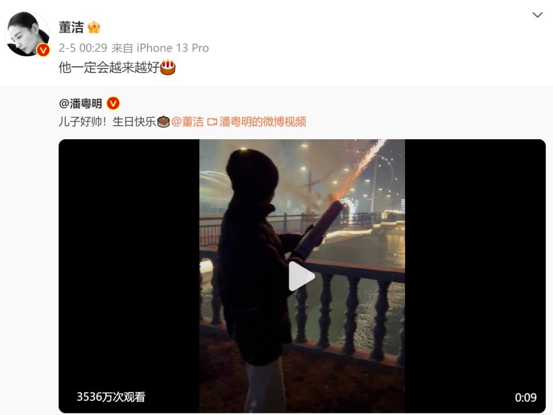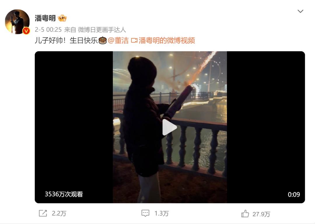 他发了儿子新年放烟花的视频,配文:“儿子好帅,生日快乐!”末了,还出人意料地@了前妻。