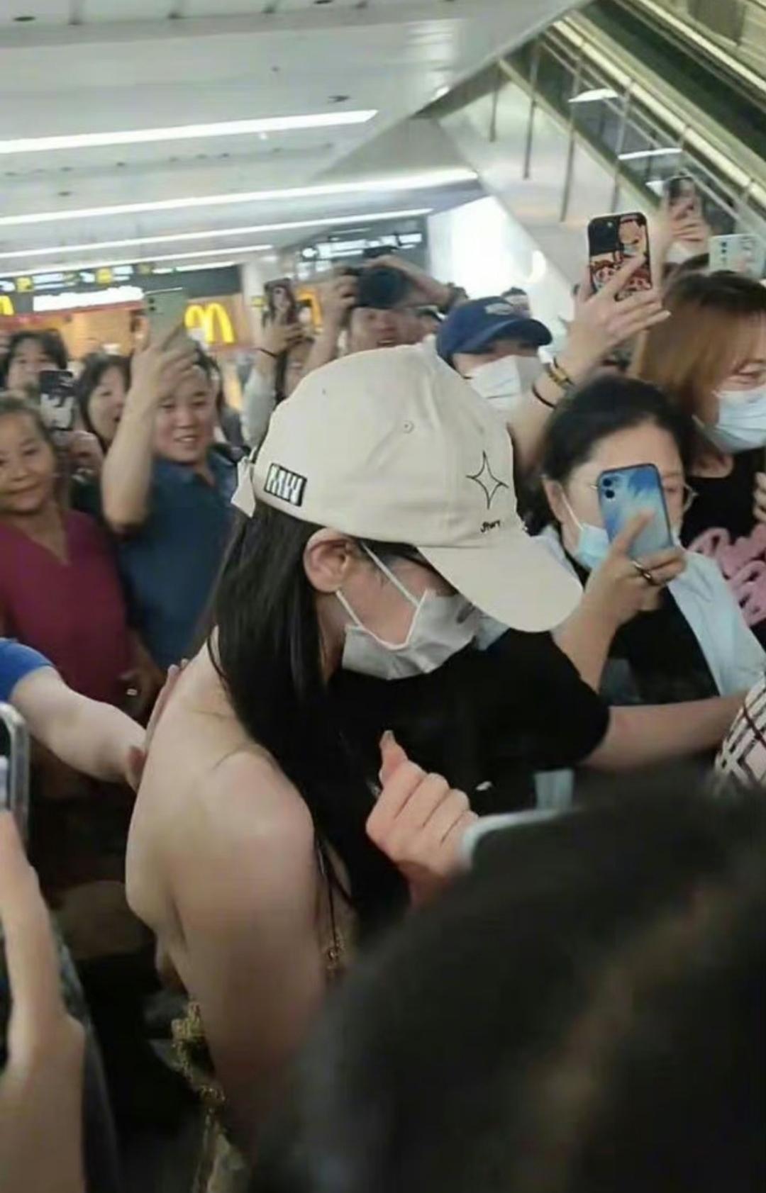 如果只是衣服漂亮的话,那么迪丽热巴还不至于上热搜,争议的地方是有陌生人在机场对着迪丽热巴“动手动脚”了。