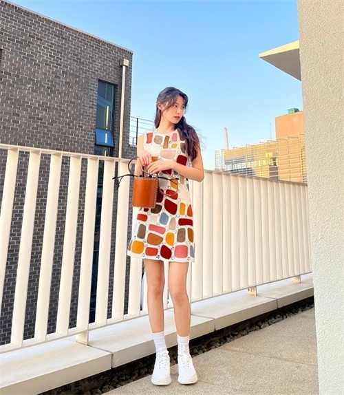 雪炫身穿的无袖迷你连衣裙,极具色彩感,散发着可爱的魅力,雪炫拥有精致的美貌和修长的双腿,八头身的黄金比例,即使穿着球鞋上也不会改变,她纤细的身体和直角的肩线脱颖而出,雪炫完美的比例和光看就让人感觉良好的笑容,以无可争议的偶像视觉中心吸引了网友们的目光。