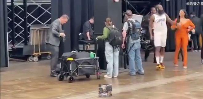 1 月 7 日消息,日前,NBA 常规赛中,快船客场以 131-122 击败太阳。本场比赛,哈登砍下 22 分 5 篮板 11 助攻。赛后发生了耐人寻味的一幕,比尔的白人妻子在球员通道等待自己的老公,结果看到哈登走过来主动和他击掌庆祝,郎情妾意!