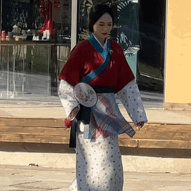 唐嫣《我们的客栈》cos佟湘玉 边走路边扇扇子心情好