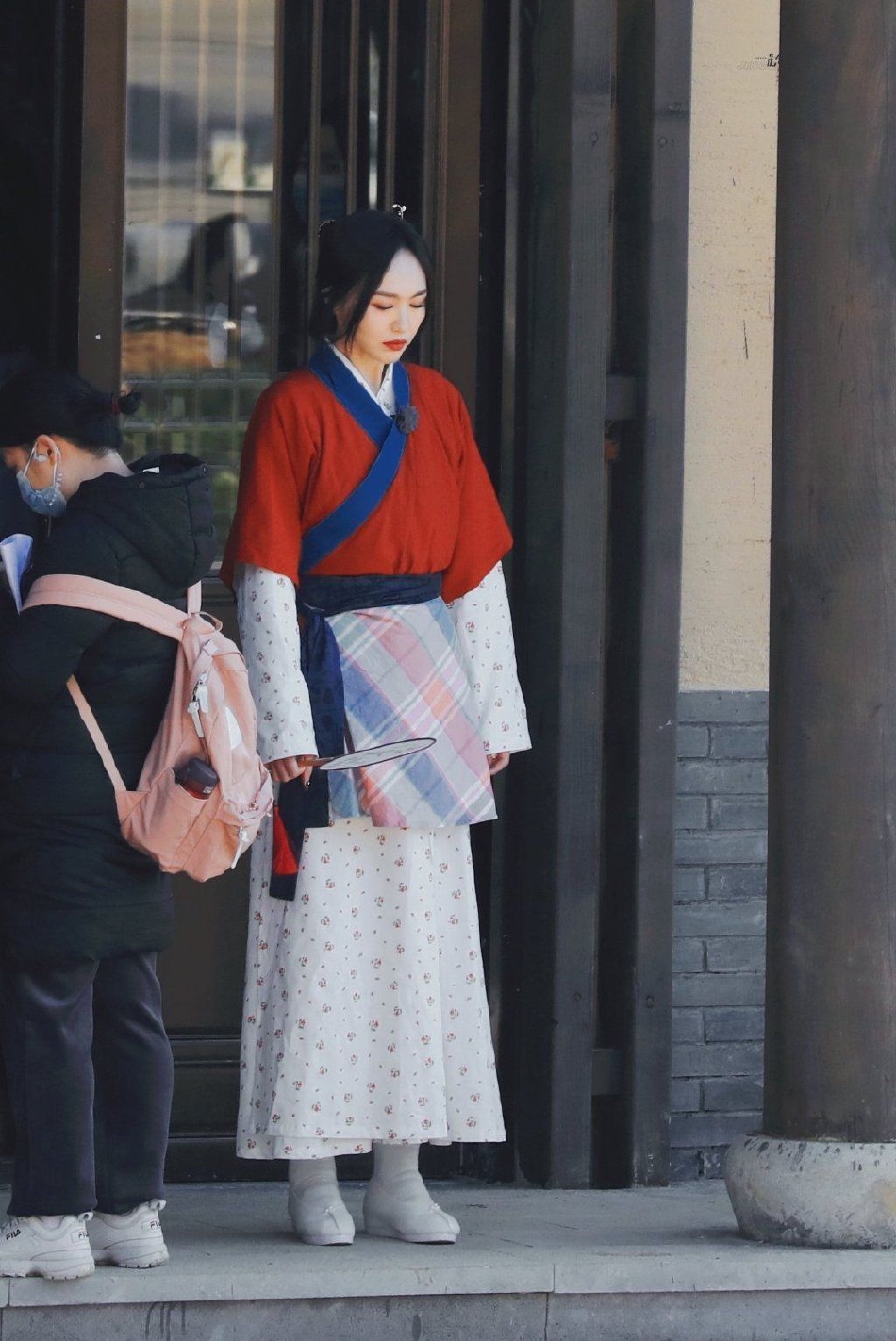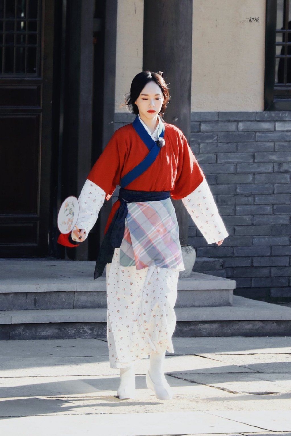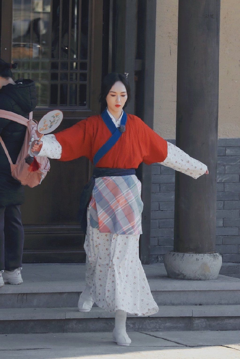 原标题:组图:唐嫣《我们的客栈》cos佟湘玉 边走路边扇扇子心情好