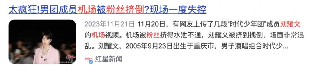 很多新闻都曾报道过,粉丝追星挤碎机场玻璃、粉丝接机挤倒男团成员等等。