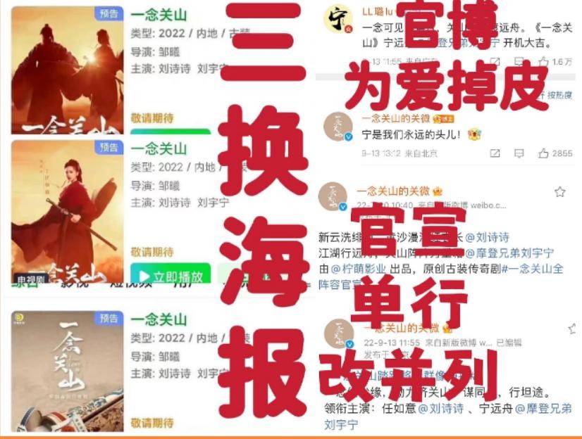 先是撕搭档的男演员咖位不够,甚至在宣传时都不把《一念关山》的男主刘宇宁和刘诗诗放在一起,而是直接用刘诗诗在《狐妖小红娘竹业篇》中的形象组 cp。