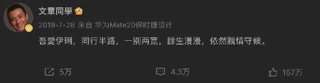 没有离婚的文章,低调了很多。2017 年文章做导演和马伊琍一起主演的电视剧《剃刀边缘》网络上点击量突破了 5 亿。