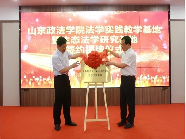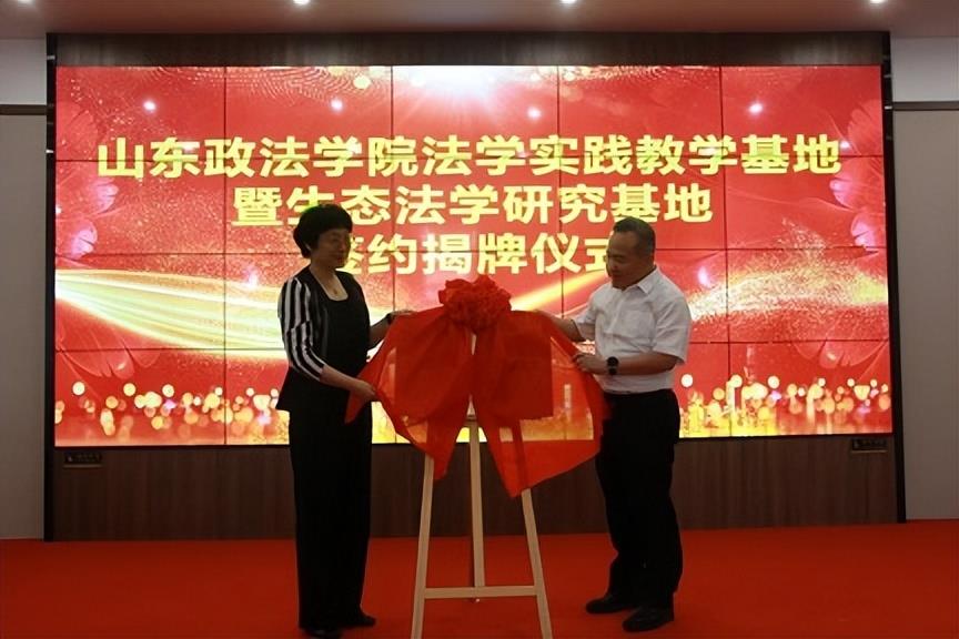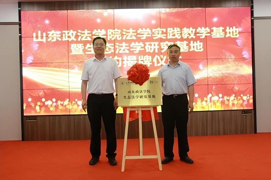 张玉成同志与李飞雨同志为“山东政法学院生态法学研究基地”揭牌。