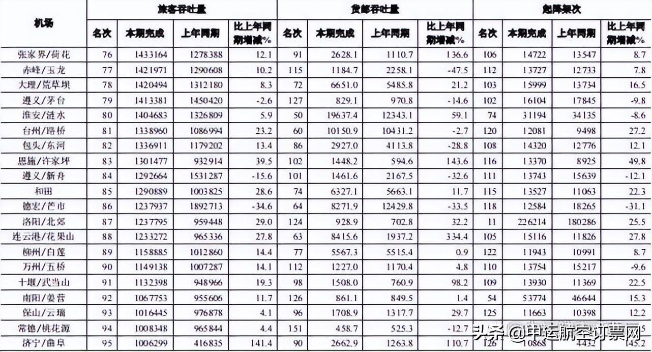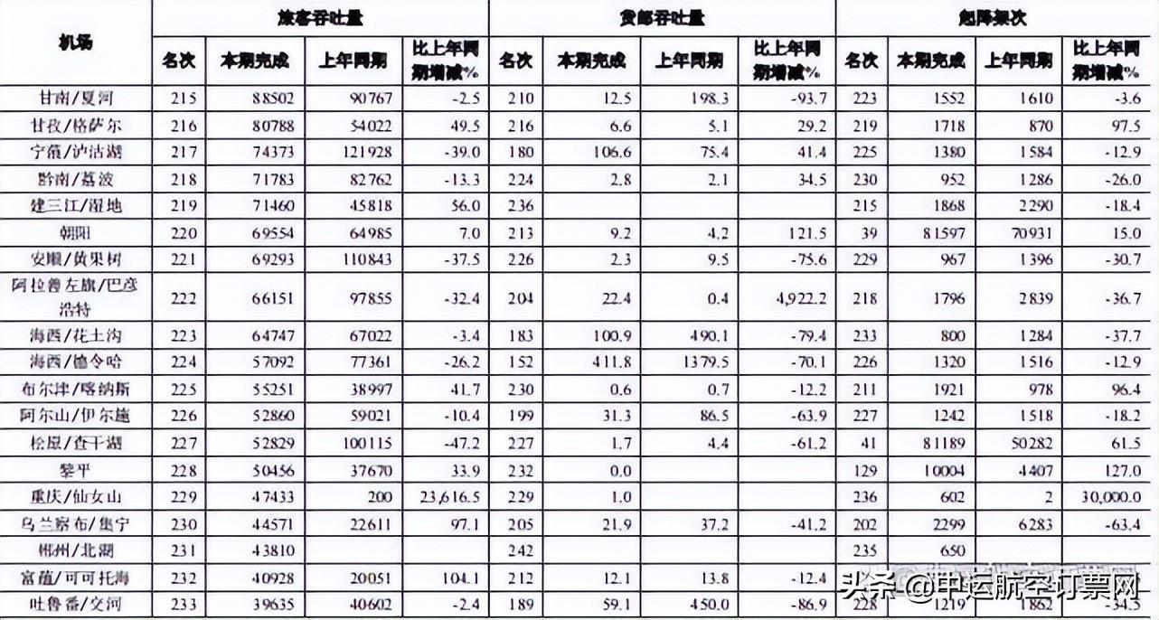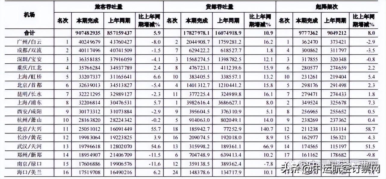旅客吞吐量/40249679次 货邮吞吐量/2044908 起落架次/362470
