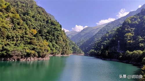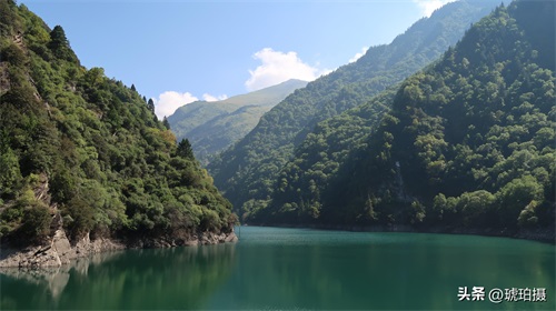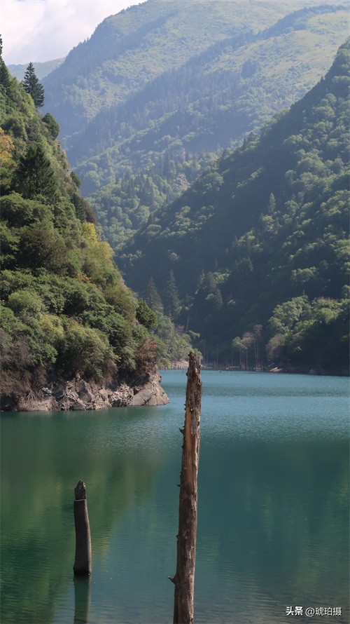 长海是松坪沟海拔最高、最长的海子,夹在两山之间,静静地躺在那里。水呈墨绿色,又因山体与天空的倒影,色彩深浅不一。