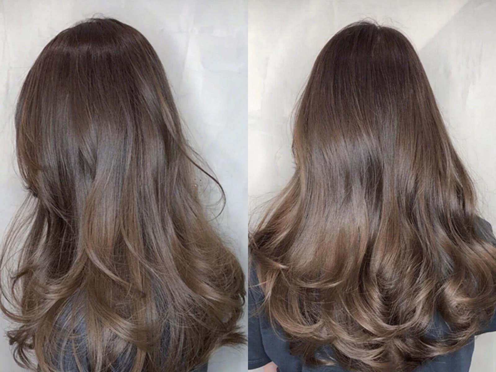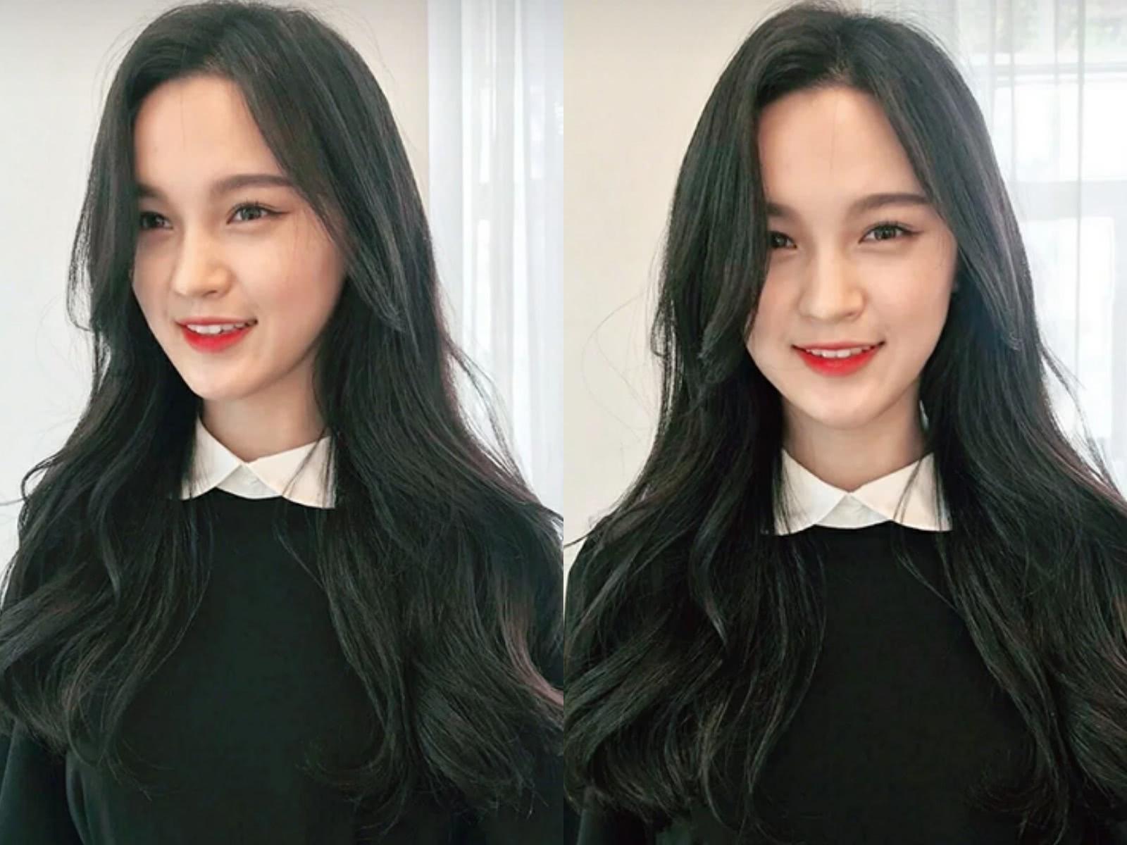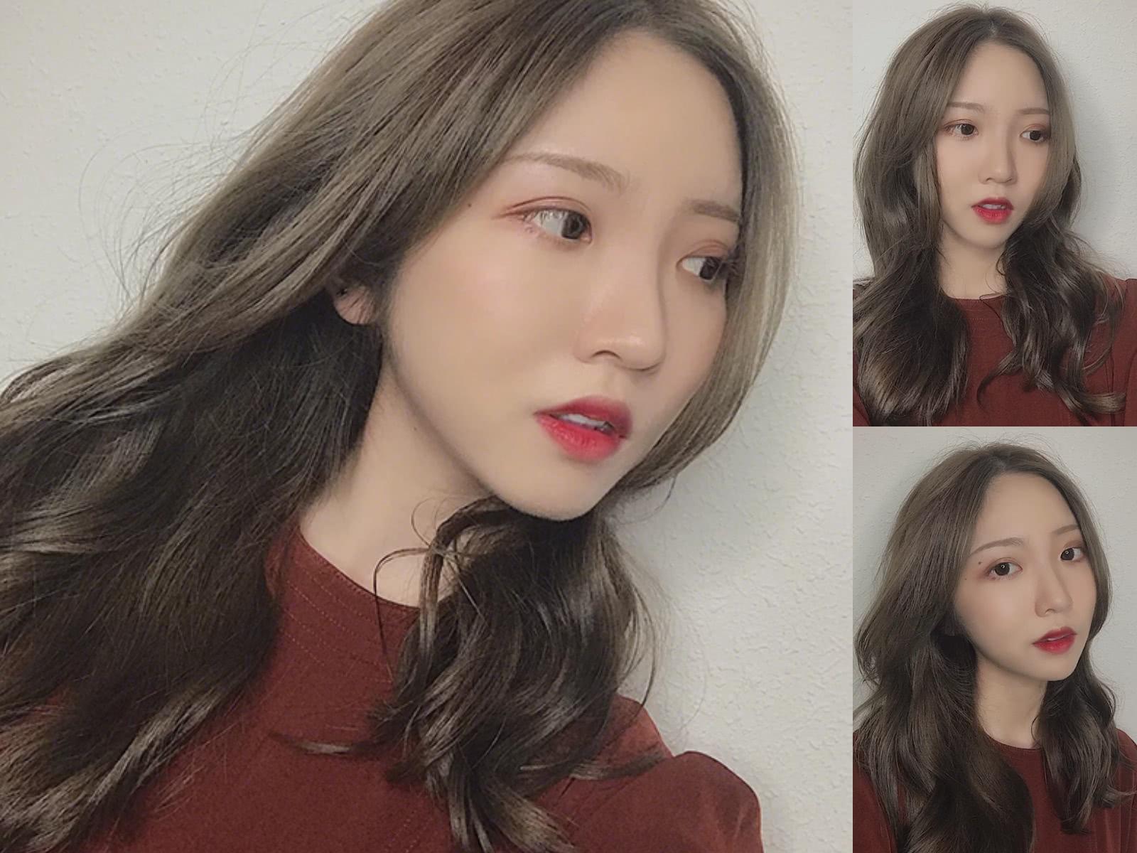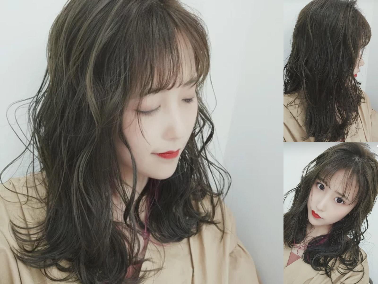 这一款披肩的长发,经过烫卷后真的好看了许多,自然弧度感的发丝,就这样随意的散落在肩上,好美。搭配侧分八字刘海,修颜效果满满的,头发还染上了一个冷棕发色,混合着一点青木灰的色调,看起来真的是质感十足,还巨显肤白的。