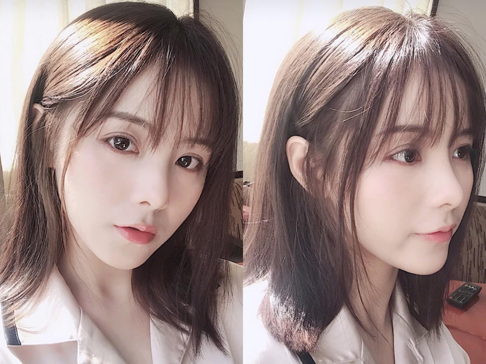 如果你觉得在秋冬里染上这么一个冷棕色染发不合适,那还真的是大错特错了,冷棕黄的色系,搭配着齐肩的发型。头发虽然没有经过烫卷,但发尾处还是因为长度问题带着一些外翘弧度,空气龙须刘海设计,整个人都显得很减龄、甜美。