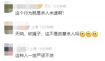 该业主直接用铲子将安全绳的副绳砍成三段,旁边有四名工人挂着在作业,楼栋有三十二层一百一十米高,好在有安全员在楼顶看守及时阻拦,工人们都没事。