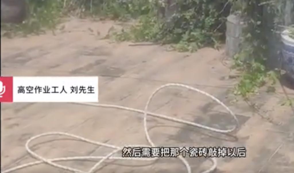据报道,高空作业工人刘先生告诉记者,该小区外墙瓷砖大面积脱落,需要清理恢复,一业主占用楼顶建了一个花园,施工时可能损坏了一些花草,由此跟业主产生了矛盾,施工时遭到业主阻拦。