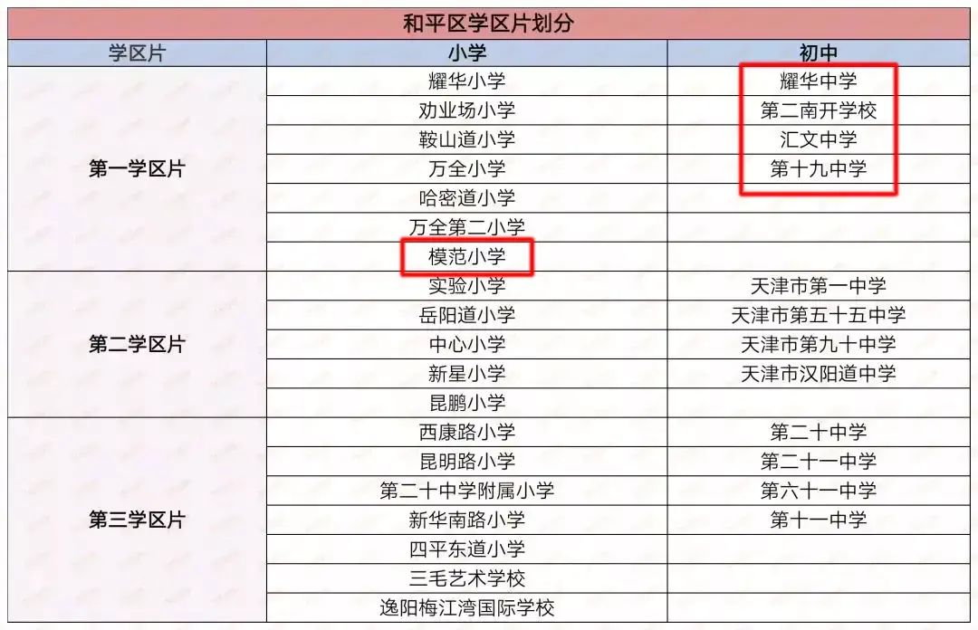【划片初中】耀华中学、第二南开中学、汇文中学、第十九中学