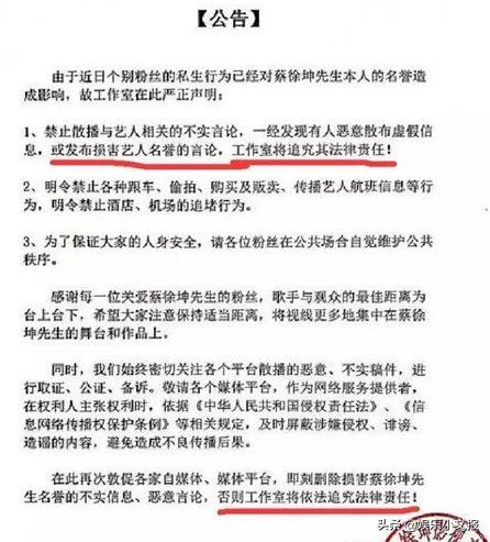对于黑粉的辱骂,蔡徐坤一直保持沉默,这些黑粉看到蔡徐坤没有做出回应,反而更加猖狂,蔡徐坤终于不再坐以待毙开始做出反击,后来蔡徐坤工作室做出了回应,文中严厉声明将收集各大网络平台抹黑他的证据,而且还会用法律武器保护自己权益,