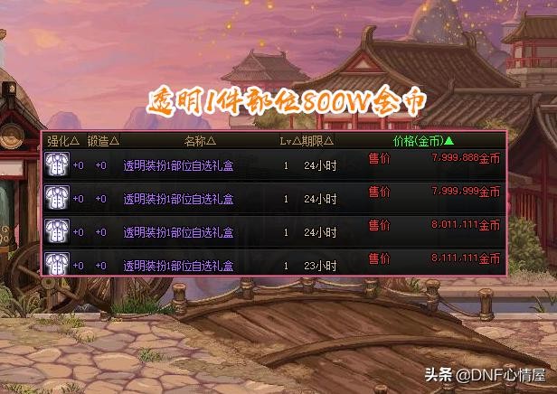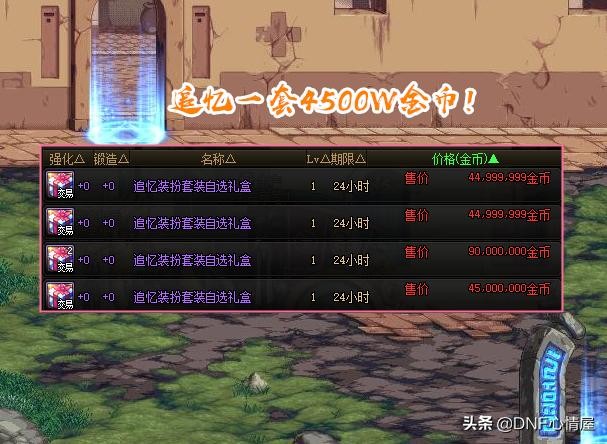 【2】透明装扮1部位自选礼盒。无任何交易限制,商人也能横插一脚,单件要800W金币。而梦想装扮合成器,需要8件才能出1件天2苍穹之翼,相当于6400W金币,可见追忆装扮更合适。
