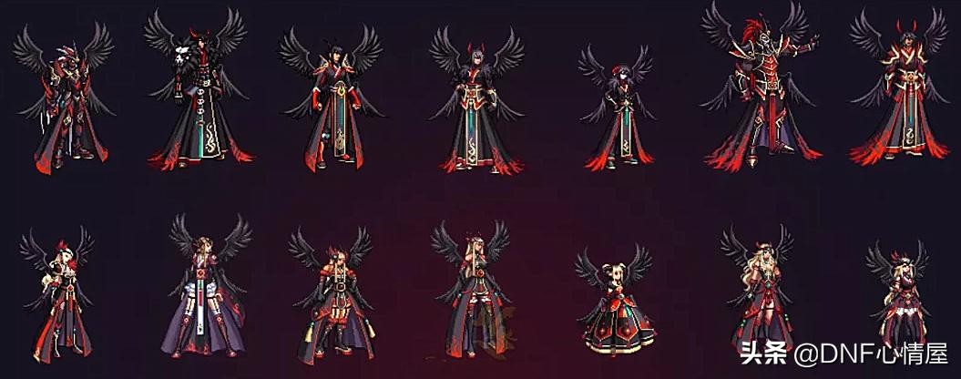 【1】暗黑全职业一览。一个模型的外观,当颜色不一样,颜值同样发生变动。暗黑苍穹之翼天2,最独特的是翅膀,能彰显出角色霸气的一面。男鬼剑士至尊魅影系列,在诸多天空套中,绝对能名列前茅!因主打“暗黑”系列,翅膀是黑羽毛,身上的部位也非全黑。