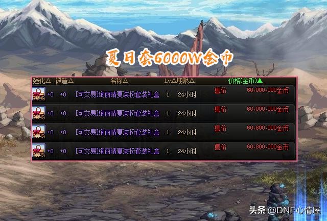 【1】追忆装扮套装自选礼盒。以跨五大区为例,单个在拍卖行4500W金币左右,可从3套装扮中选择1个。虽说礼盒有时间限制,但选出来的装扮,并没有期限。