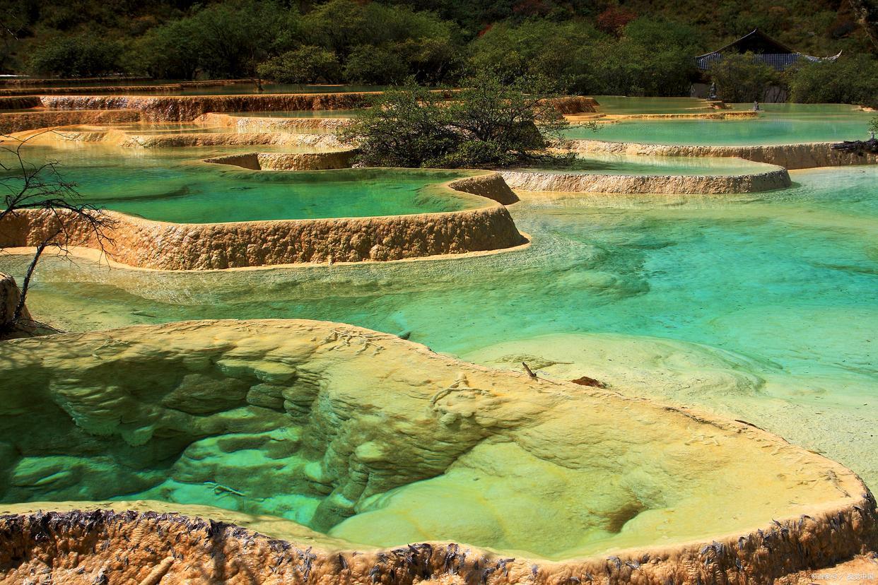 2. 黄龙:位于九寨沟附近的黄龙景区,以其温泉、雪山和独特的地貌成为另一个自然奇迹。黄龙寺的建筑和多姿多彩的温泉池是游客的亮点。