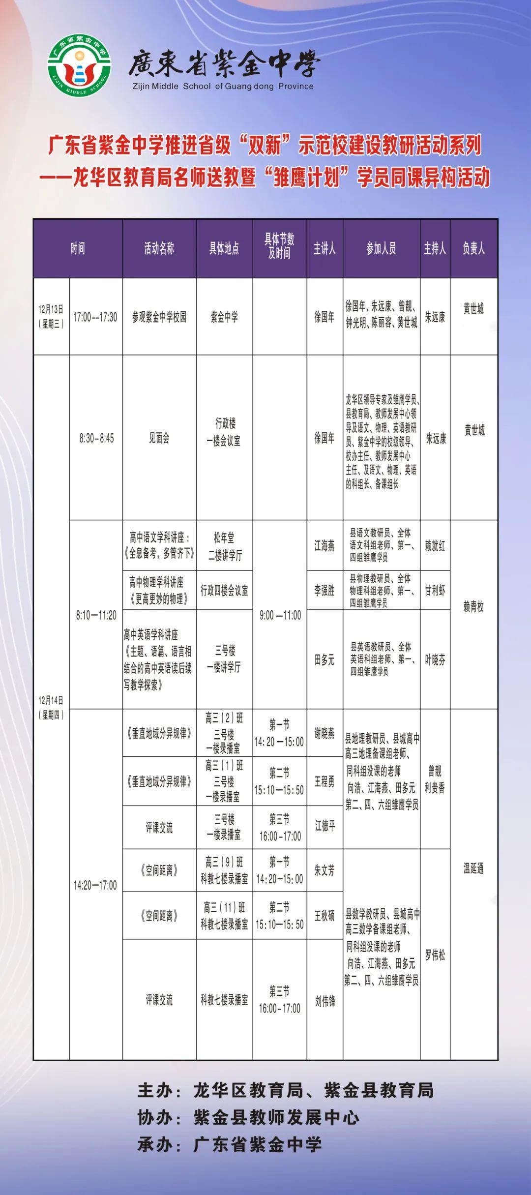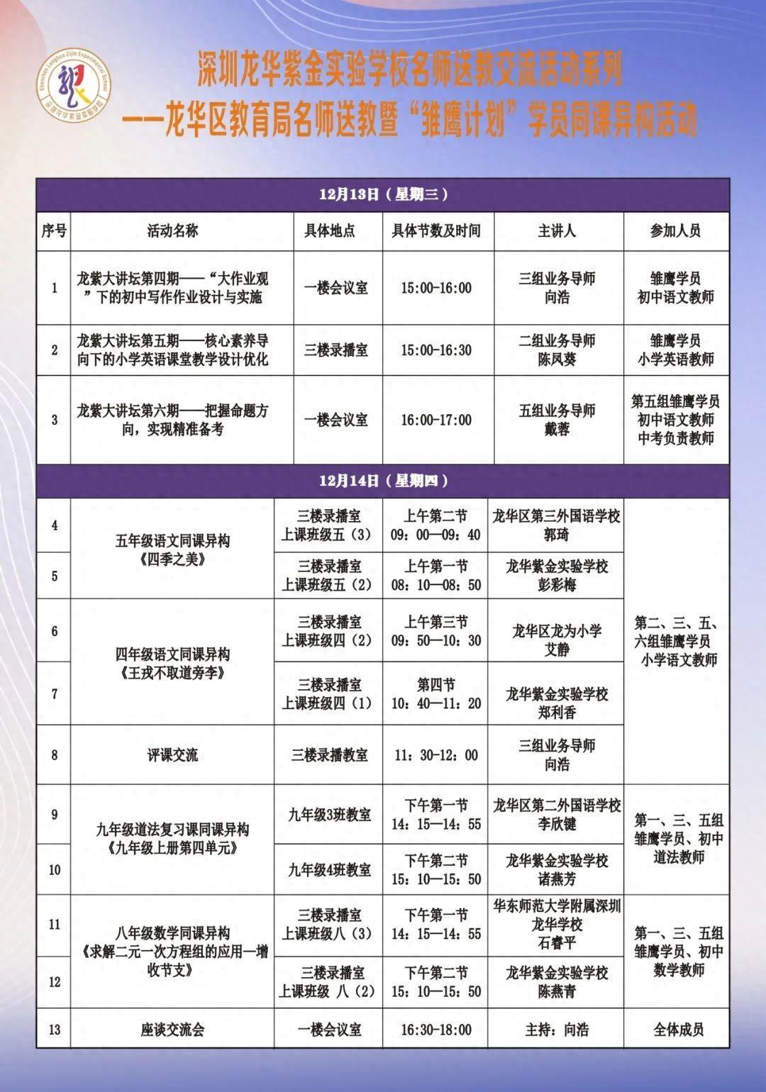 龙华·紫金教育帮扶 | 6场名师送教、6组同课异构活动圆满结束