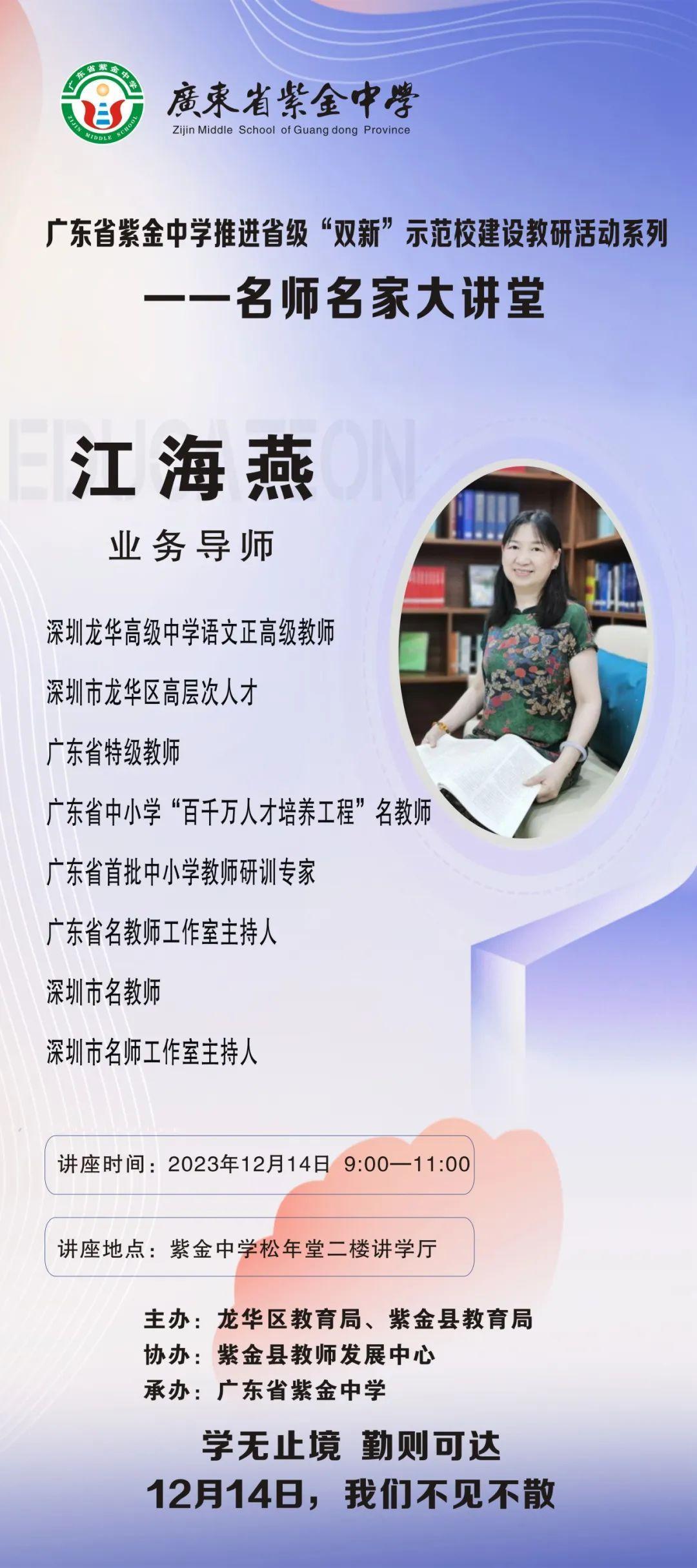 13日-14日,“雏鹰计划”六位业务导师(名教师)李强胜、陈凤葵、向浩、田多元、戴蓉、江海燕分别面向学员及紫金县语文、英语、物理学科教师进行专家讲座。