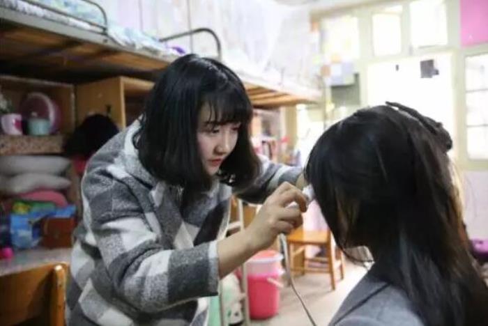 大学是一所整容院,这句话没有错。很多的女生都是在大学中才接触到化妆品,开始学习化妆。每个宿舍也会有一个美妆达人,担任起宿舍的形象指导,日常帮宿舍的人搭配衣服,修眉毛,化妆,编头发。这时候是女生们最美好的时候,也是宿舍中很温馨的时刻。最后,大家都画好美美的妆,一起拿出手机拍好看的照片,留下纪念。