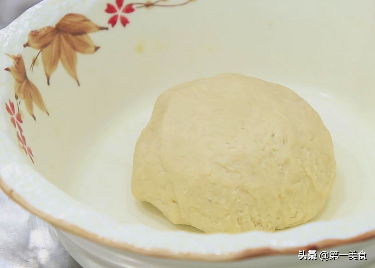 淋点油,使面团起酥,把面团揉光滑。和到手光、面光、盆光就OK了。