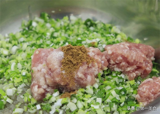 粉条我是提前用温水泡上,把泡软的粉条切碎,剁点葱末、五花肉末。调味:加入
