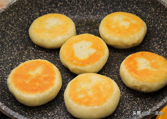 盖上锅盖,勤看着点,一面煎至金黄,把面饼翻过来煎另一面。两面都煎至金黄就可以出锅了。