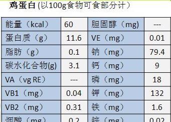 下表分别是鸡蛋、鸡蛋白、鸡蛋黄中各种营养成分的含量。
