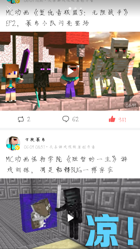 菜鸟主要是播放有趣的我的世界动画,可是还有东西比动画更